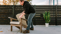 Outdoor furniture should be designed to enjoy! We use HDPE lumber and 316 Stainless hardware to ensure a low maintenance experience. No need for sanding, oil, or enhancements.We recommend spot cleaning with a light detergent (Dish Soap) and once a year power was heron low PSI (1000 or less). Make more time for relaxation!