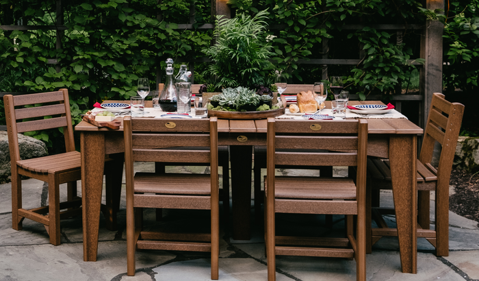 The straight edge, low-back design of our Island Side Chair lends a more contemporary and casual air to any outdoor dining space. And while it looks terrific with an Island Dining Table, it’s versatile enough to pair with any of our LuxCraft tables. So pull up a chair, pour yourself a glass of lemonade, and relax! Standard with umbrella hole, Umbrella Stabilizer, and includes a hole plug. The contrasting straight edges and curves of our Island Dining Table lend a more contemporary and casual air to any outdoor patio. Perfect for dinner parties and entertaining neighbors in your very own backyard, this table is only available in Dining Height.