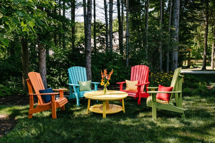 Royal Adirondack Chairs are a combination of the best features of a Deluxe Adirondack Chair and a bench: the iconic Adirondack design plus the Elevated seat of a bench that allows for easier seating and rising. In addition, they're made of virtually maintenance-free poly, so all you need to do is select your color, sit back, and relax! This Royal Adirondack Chair takes the beauty and style of our Luxcraft Adirondack Chair and raises the height for easier access. Nothing summarizes the relaxing feeling of sitting outside in nature, at the lake or in your backyard, than that feeling of leaning way back and kicking your feet up in our Royal Adirondack Chair.