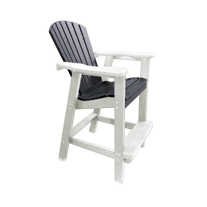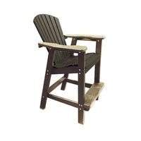 Entertain in style with this Adirondack-style bar height chair which is so comfortable you will not want to get up! Nice wide "step" to rest your legs on while enjoying the sit! Matching bar height or tete-a-tete tables sold separate. Perfect Choice Furniture chair seats and backs are machined out of one piece of poly-lumber material making them extra durable. Poly-lumber 1" thick arms and 1-1/2" thick legs. Seats and backs are completely assembled, just attach the legs and the arms. Guaranteed to not crack, split or fade under "normal" residential use for 10 years (ASSEMBLY REQUIRED)